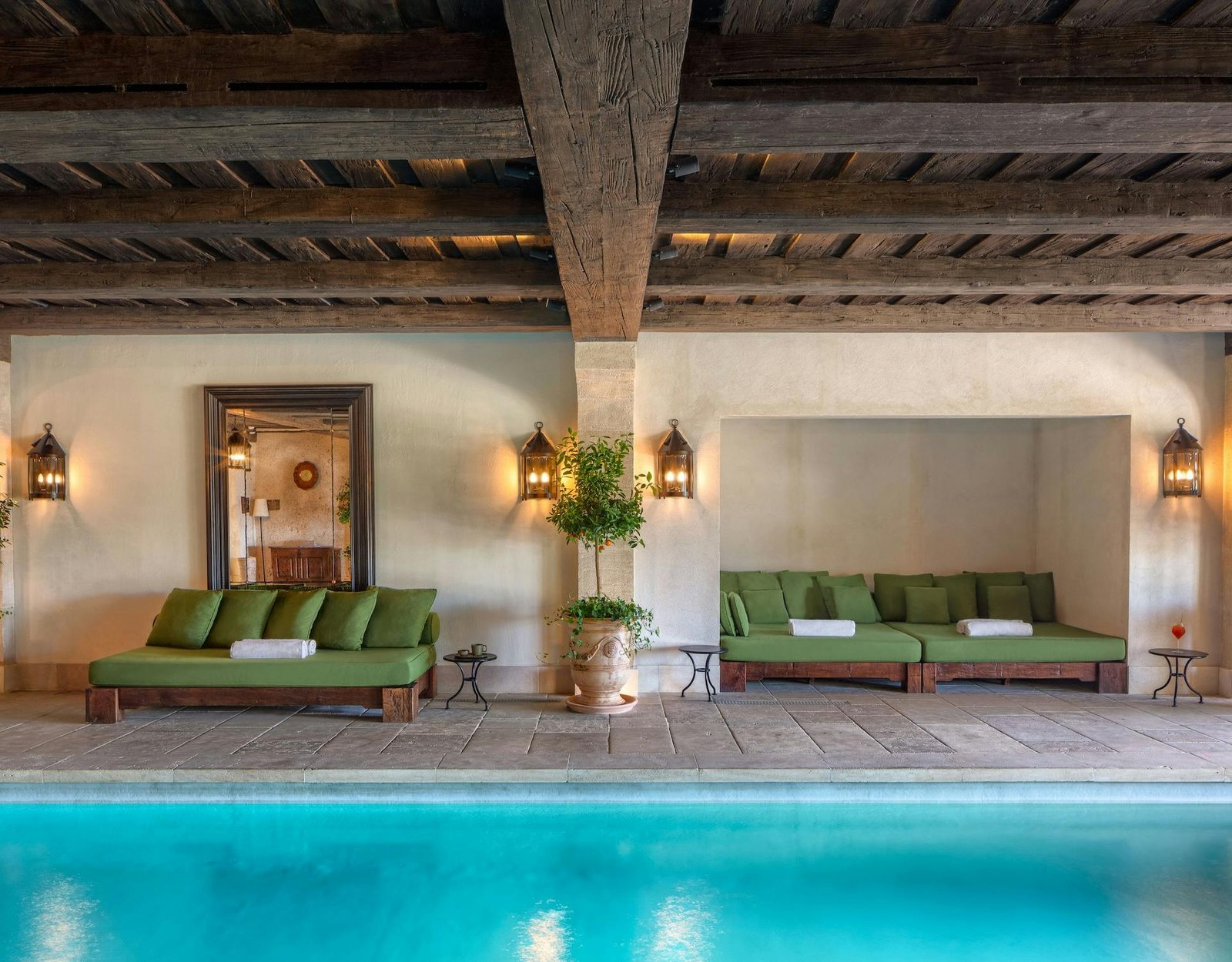 Dining alone is reason enough to book: the hotel operates five venues across the property and village, anchored by Clover Gordes from two-Michelin-starred chef Jean-François Piège and L’Orangerie, itself Michelin-starred. The Sisley Spa spans over 17,000 square feet with an indoor pool, hammam, and full treatment suites.