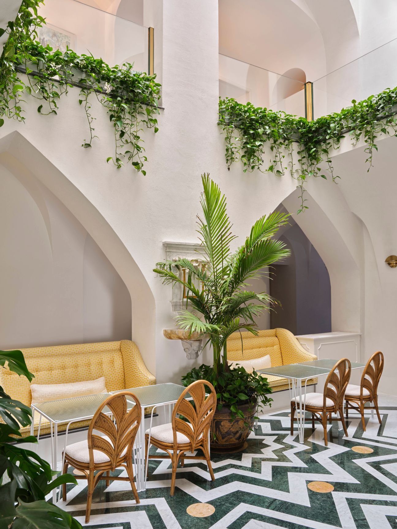Palazzo Avino brings Ravello’s elevated elegance to life from a meticulously restored 12th-century palace perched high above the Mediterranean. The hotel’s 43 rooms and suites are rich in classical Italian charm, furnished with antiques and hand-painted details, while sea-facing accommodations open onto private terraces. The signature Infinito Suite elevates the experience further with a dual-level layout and a private infinity plunge pool suspended above the sea.
